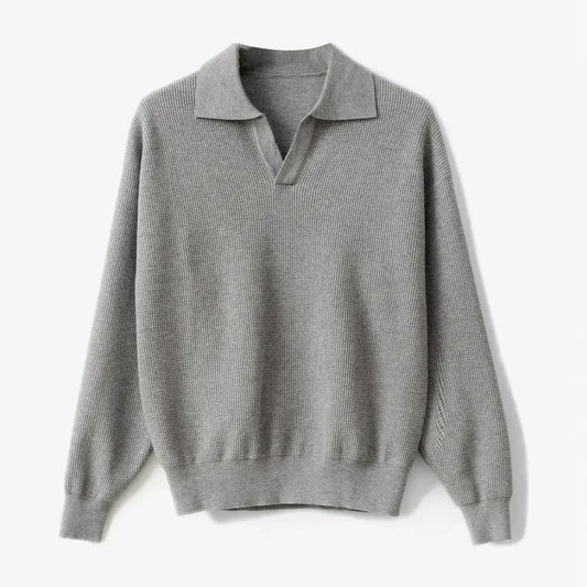 V-Neck Polo Sweater Ribbed