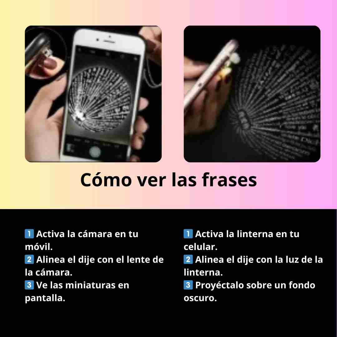 Este collar único esconde un secreto mágico: al proyectarlo con luz o mirarlo a través de su cristal, revelará un “Te quiero” en 100 idiomas. Un gesto romántico y original que hará que esa persona especial se sienta más amada que nunca.