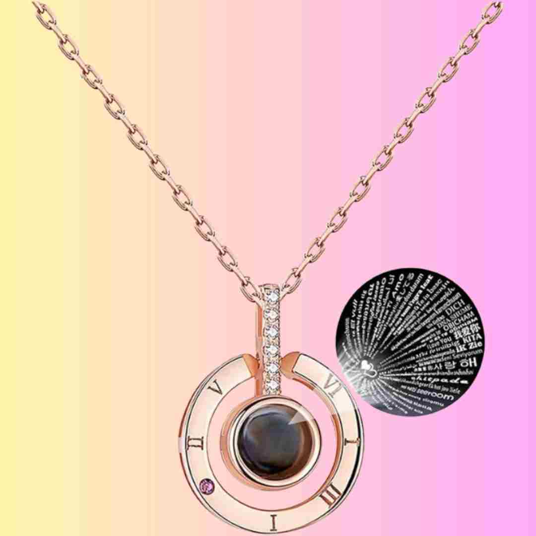 Collar de Proyección | Te Amo en 100 Idiomas + Caja de joyería