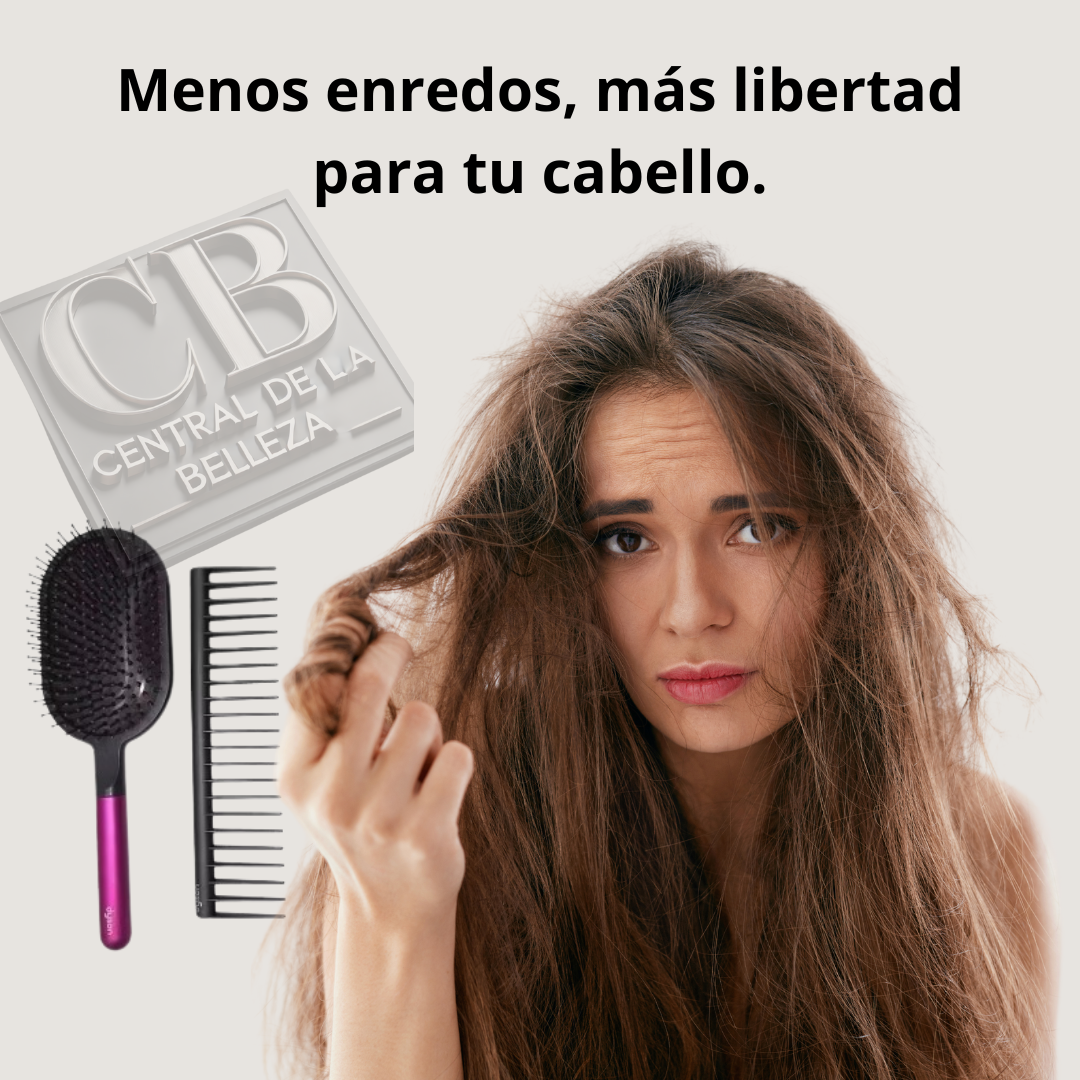 Cerdas flexibles: Evitan la rotura del cabello, protegiendo su estructura natural.